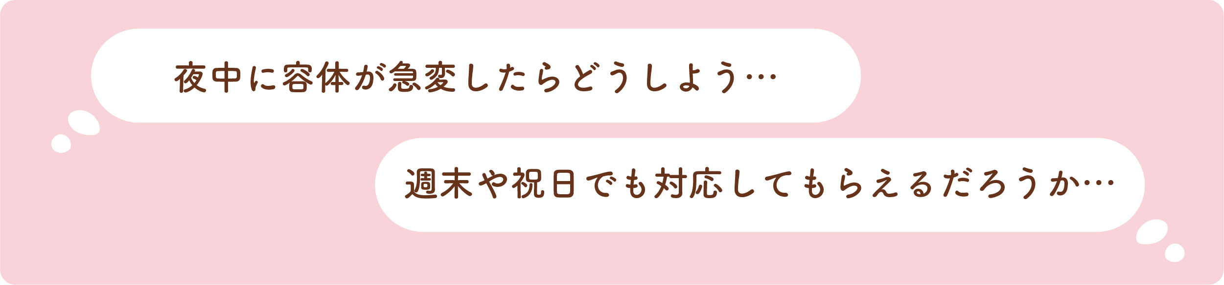 急な体調の変化はもちろん、医療処置に関するご相談、日常生活での困りごとなど、どんな時でも遠慮なくご連絡ください。経験豊富な専門スタッフが、迅速かつ丁寧に対応いたします。