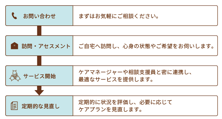 ご家族様にとっては、「一人で抱え込まずに済む」という安堵感を。